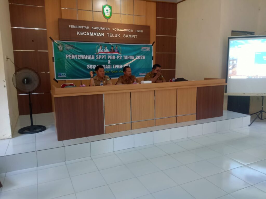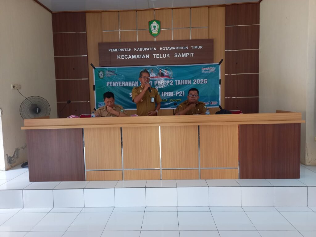 Ujung Pandaran — Dalam semangat sinergi untuk mendorong percepatan pembangunan daerah, Badan Pendapatan Daerah (Bapenda) Kabupaten Kotawaringin Timur menggelar kegiatan Sosialisasi PBB-P2, Penyampaian SPPT Tahun 2026 dan Penyerahan SK Petugas Penanganan PBB-P2 di Aula Kecamatan Teluk Sampit, pada Selasa, 07/04/2026.