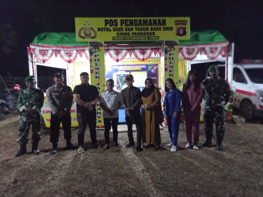 Ujung Pandaran – Dalam rangka menciptakan situasi keamanan dan ketertiban masyarakat (kamtibmas) yang kondusif selama perayaan Natal 2025 dan menyambut Tahun Baru 2026 (Nataru), Pemerintah Kecamatan Teluk Sampit beserta personil Pospol Teluk Sampit, anggota Posramil Teluk Sampit, Tim Kesehatan dari Puskesmas Ujung Pandaran Beserta lapisan elemen Masyarakat Ujung Pandaran melaksanakan berbagai kegiatan pengamanan dan pelayanan kepada masyarakat yang di mulai pada Sabtu 20 Desember 2026 dan akan berakhir pada Jum’at 02 januari 2026, guna memastikan seluruh rangkaian perayaan berjalan aman, tertib, dan lancar.