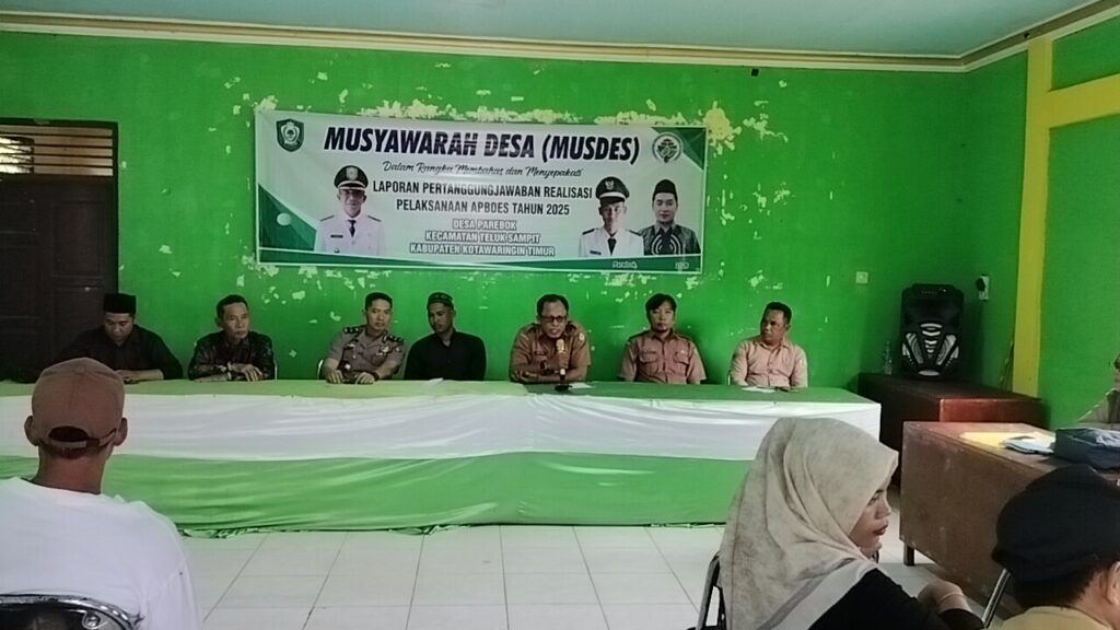 Musdes ini dipimpin oleh Kepala Desa Parebok beserta Perangkat Desa, turut hadir pada kegiata ini Sekretaris Camat Teluk beserta staf Kecamatan, Badan Permusyawaratan Desa (BPD), perangkat desa, lembaga kemasyarakatan desa, tokoh masyarakat, serta unsur pendamping desa. Kegiatan dilaksanakan sebagai forum resmi dan terbuka untuk menyampaikan realisasi penggunaan APBDes kepada masyarakat desa.