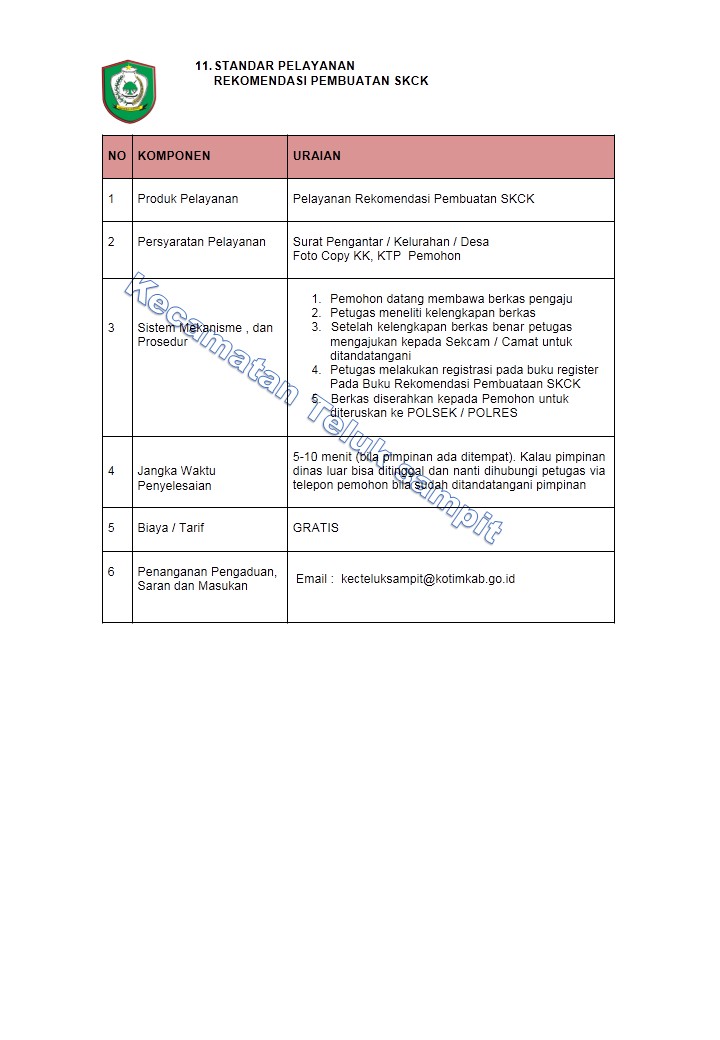 • Standar Pelayanan