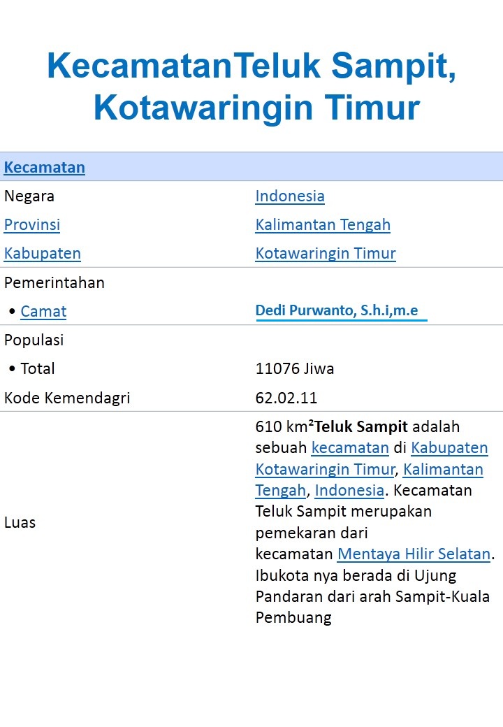 Data Statistik Kecamatan Teluk Sampit Kabupaten Kotawaringin Timur Kalimantan Tengah DATA STATISTIK SEKTORAL 2021 KECAMATAN TELUK SAMPIT DATA STATISTIK SEKTORAL 2021 KECAMATAN TELUK SAMPIT